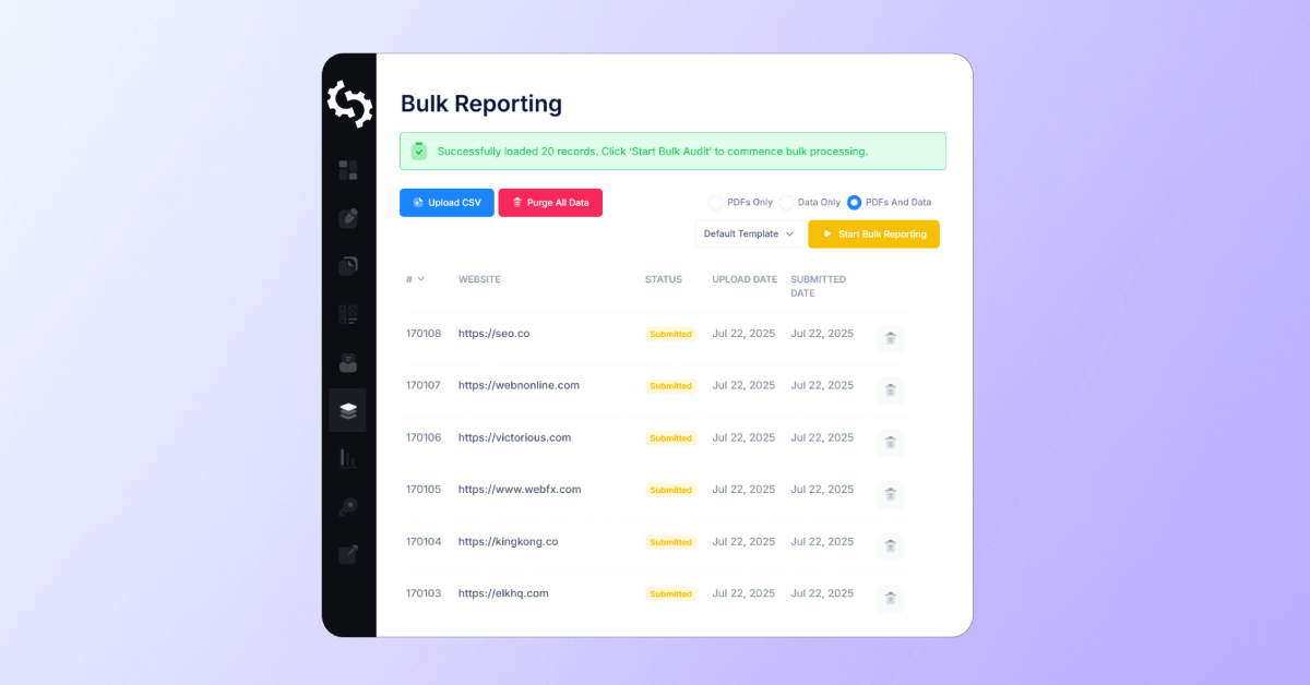 What is Bulk Reporting? If you're already an SEOptimer customer, you'll be familiar with our White Label Reports. They're perfect for auditing any website across over 100 checks and criteria incl...