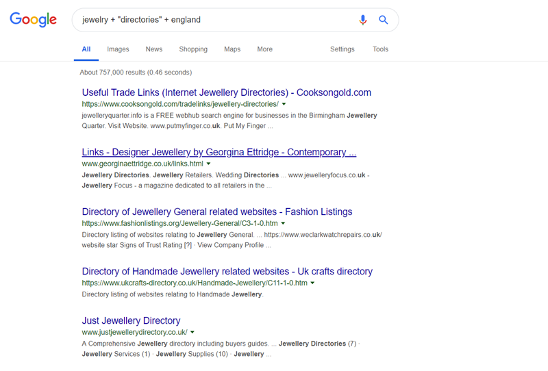 Here's an example for the target niche of jewelry. You can see how many results there are just on the first page: