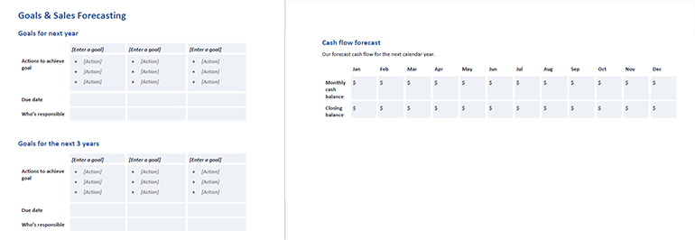 Este modelo de plano de negócios de agência de marketing inclui definição de metas para o próximo ano e definição de metas para os próximos 3 anos. Esta página é estruturada para ajudar você a definir metas SMART.