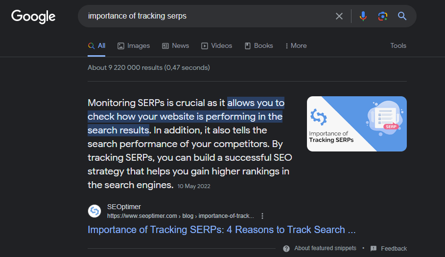 O posicionamento na caixa de Snippets em Destaque é ótimo para aumentar as taxas de cliques orgânicos e construir o reconhecimento da sua marca.