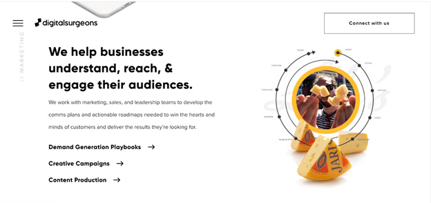 Outro em nossa lista dos melhores nomes de agências criativas é Digital Surgeons. Esta firma de consultoria criativa se orgulha de sua capacidade de personalizar soluções para seus clientes, e seu nome sugere uma abordagem direcionada à presença digital de seus clientes.