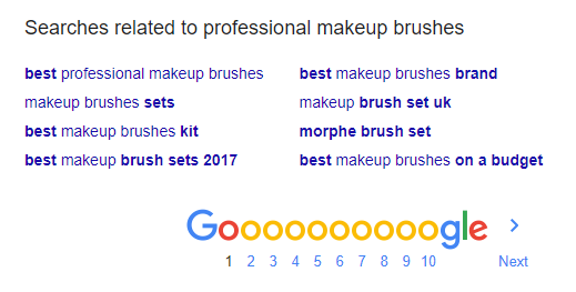 Você pode encontrar palavras-chave relacionadas usando o Keyword Planner. Ou, veja as sugestões do Google para termos de pesquisa relacionados: