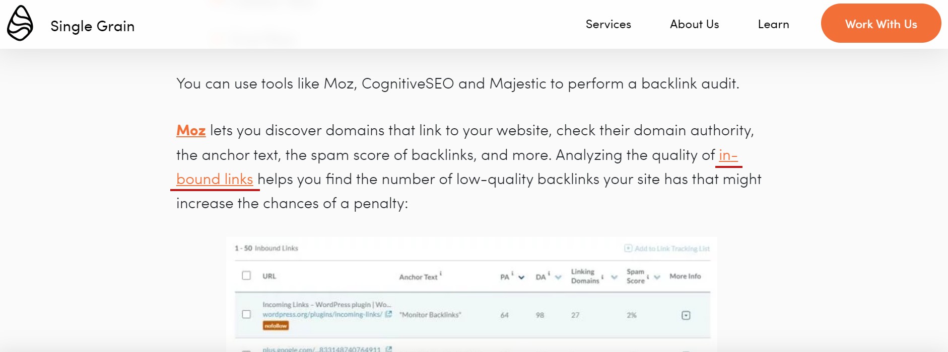 Quando você coloca links estrategicamente em conteúdo relevante em sites autoritários, isso pode atrair usuários que clicam nesses links e visitam seu site. Mais links levam a uma maior reputação do site e melhores classificações orgânicas. As melhores classificações orgânicas levam a mais tráfego orgânico.