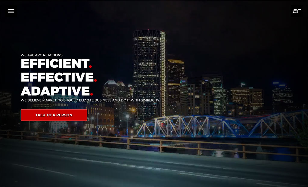 Por que amamos o site deles: Um site bem estruturado com ótimo uso de tipografia, tamanho e cor. O blog da Arc Reactions também possui uma riqueza de informações para profissionais de marketing digital.