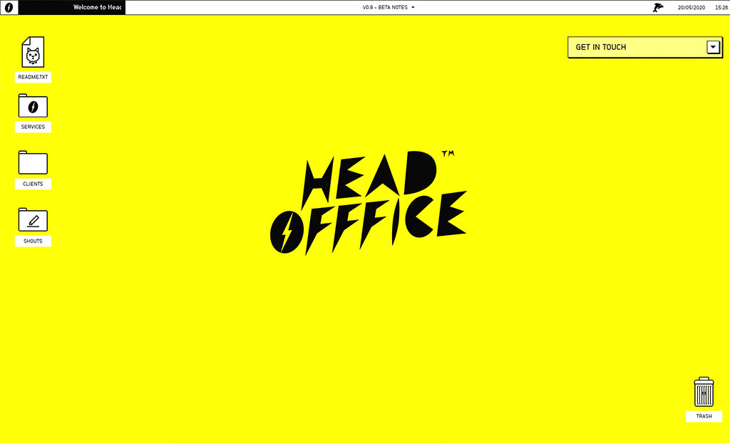 Por que amamos o site deles: "Criar conteúdo digital que é novo e diferente" - eles certamente conseguiram isso aqui! O site da Head Offfice foi projetado como um antigo computador Mac de cerca de 1997. Você pode clicar e arrastar pastas e documentos, conferir o readme.txt, ver o que está na Lixeira. Você pode até 'reiniciar' o site no menu superior esquerdo. É um site super único e nos dá muitas sensações nostálgicas.