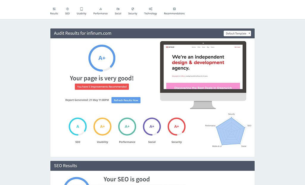 Qual o sentido de ter um ótimo site se ninguém consegue encontrá-lo? Essas agências se destacam nos quesitos de SEO, elas são A+ conforme auditado pelo relatório de auditoria gratuito do SEOptimer. Essas agências dominaram o SEO on-page e conseguiram reduzir o tempo de carregamento da página a questão de segundos. Não apenas têm uma ótima aparência, mas também marcam todas as caixas para o SEO on-page. Você pode auditar seu próprio site ou qualquer site instantaneamente com SEOptimer.