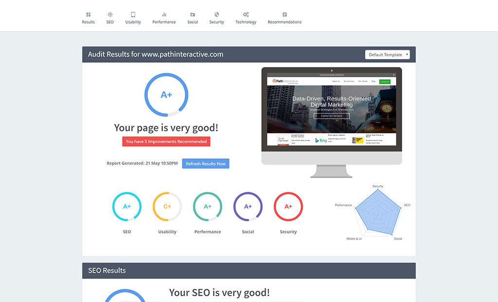 Se você está construindo ou redesenhando seu site, certifique-se de executá-lo em nossa ferramenta gratuita de Auditoria de SEO para avaliar seu SEO on-page, velocidade de carregamento, usabilidade, social e mais de 50 verificações individuais de SEO.