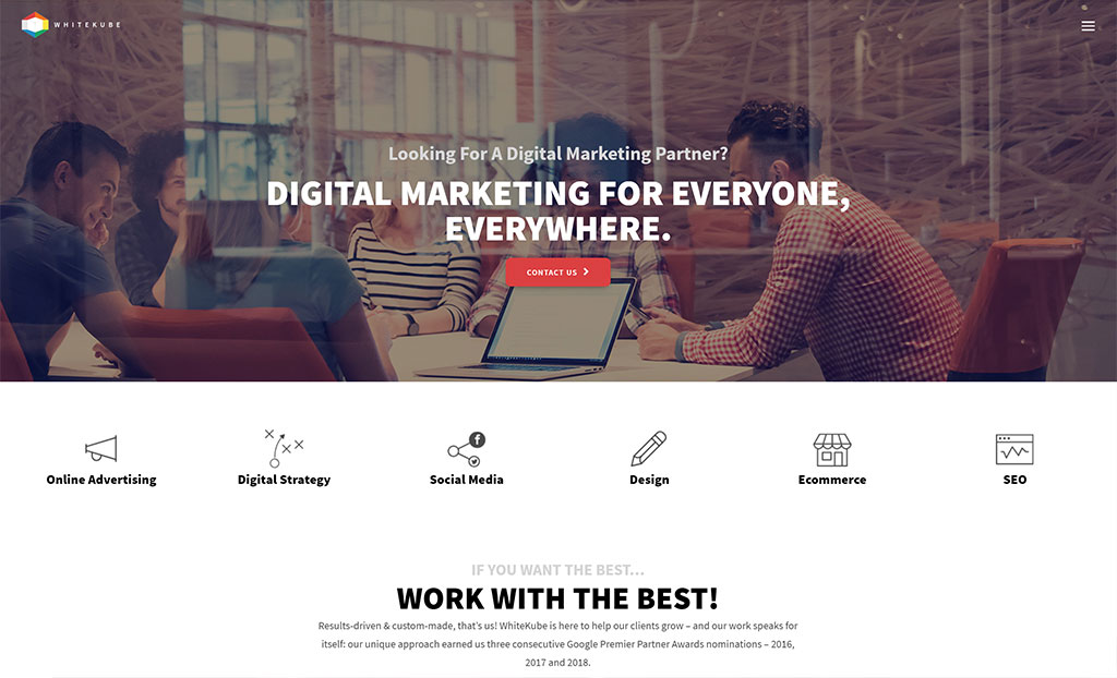 "Focada em resultados e personalizada, a WhiteKube está aqui para ajudar os clientes a crescerem. Sua abordagem única rendeu três indicações consecutivas ao Google Premier Partner Awards – 2016, 2017 e 2018."