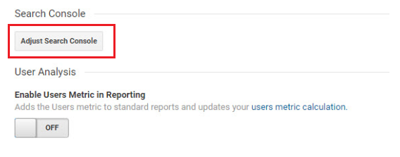 B. Em "Configurações de Propriedade", role para baixo até ver o botão "Ajustar Search Console".