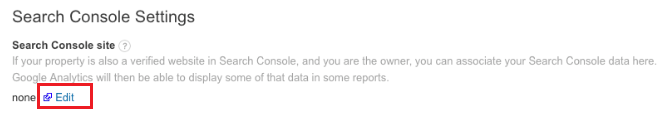 C. Na tela de Configurações do Search Console, clique no link "Editar" para adicionar seu site.