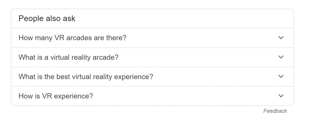 Isso significa que as perguntas que as pessoas estão fazendo podem ser “quais são os melhores arcades de realidade virtual em Nova York??” “Quais são os melhores arcades de realidade virtual perto de mim?”.
