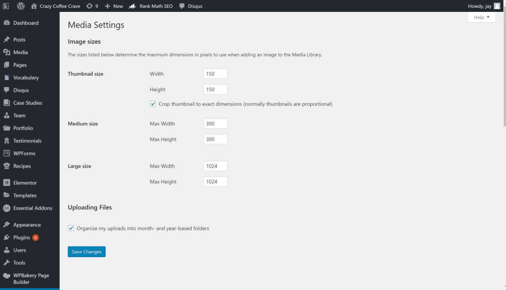 O melhor lugar para começar é verificar suas “Configurações de Mídia” sob a aba “Aparência” no Admin do WordPress.