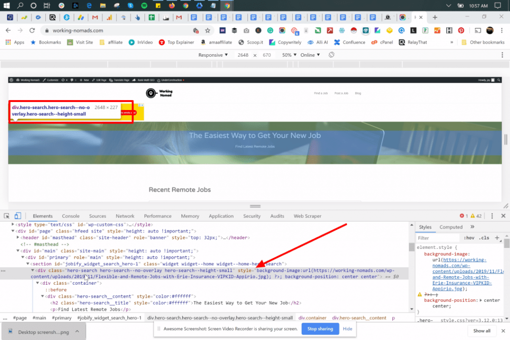 Insira a URL do seu site no Navegador Chrome e use Inspect para obter o tamanho exato da imagem seguindo os passos abaixo: