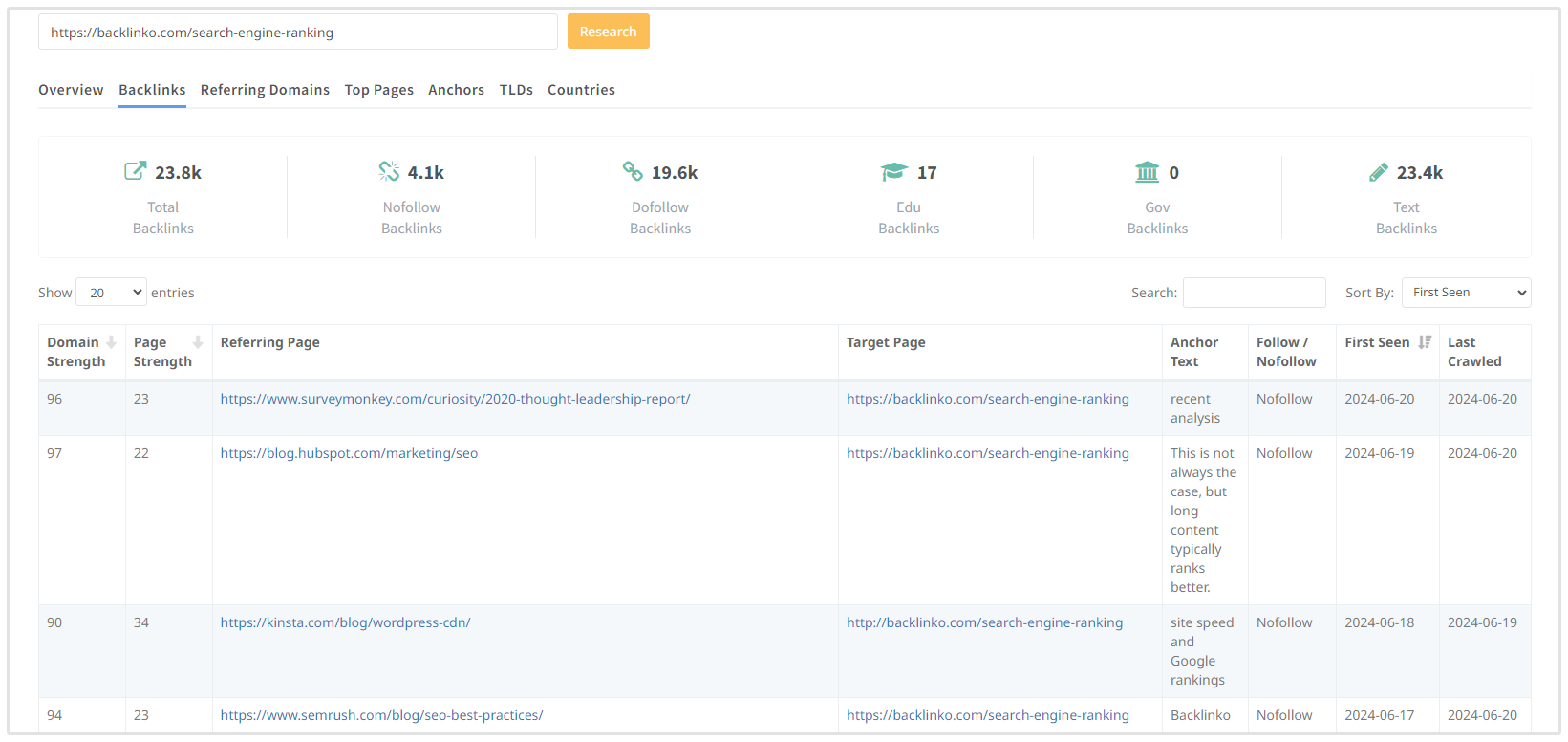 Mais especificamente, você vai querer ver quão alto o seu artigo de blog "skyscraper" está ranqueando nos SERPs e quantos backlinks ele recebeu.