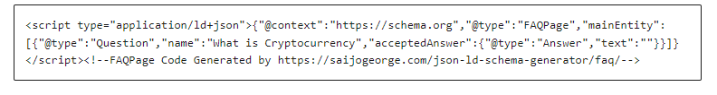 Alternativt kan du også bruge et værktøj som FAQPage JSON-LD Schema Generator til at indtaste spørgsmål og svar. Værktøjet vil automatisk oprette et FAQ-skema, som vist nedenfor.