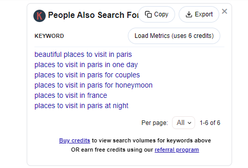 Som du kan se på billedet ovenfor, viser hver PASF-boks seks forespørgsler. Disse forespørgsler er relevante og kommer direkte fra Google, så det er meget fordelagtigt at udnytte disse i en SEO-strategi.