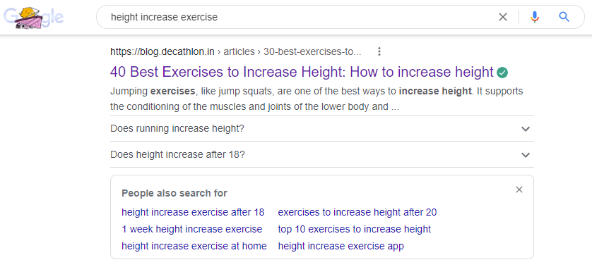 For eksempel, hvis jeg ønsker at finde relaterede nøgleordsideer til det primære nøgleord ‘height increase exercise’, vil jeg indtaste nøgleordet på Google: