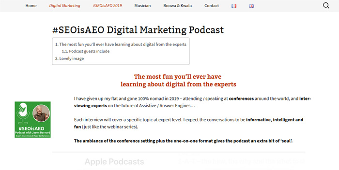 Som et eksempel, tjek #SEOisAEO podcast fra Jason Barnard.