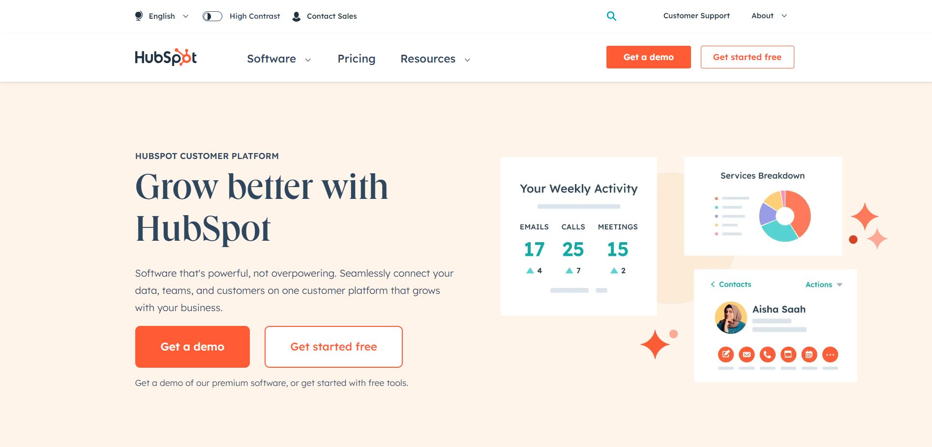 HubSpot giver brugerne mulighed for at spore webstedsydelse, administrere sociale medier, optimere e-mailkampagner og forbedre brugerengagement—alt sammen fra en enkelt platform.