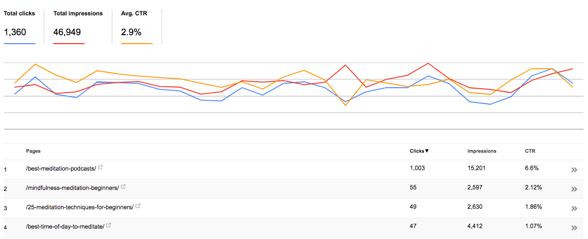 Du kan også se din CTR på en side, land og endda enheds basis, baseret på sorteringsmulighederne ovenfor.