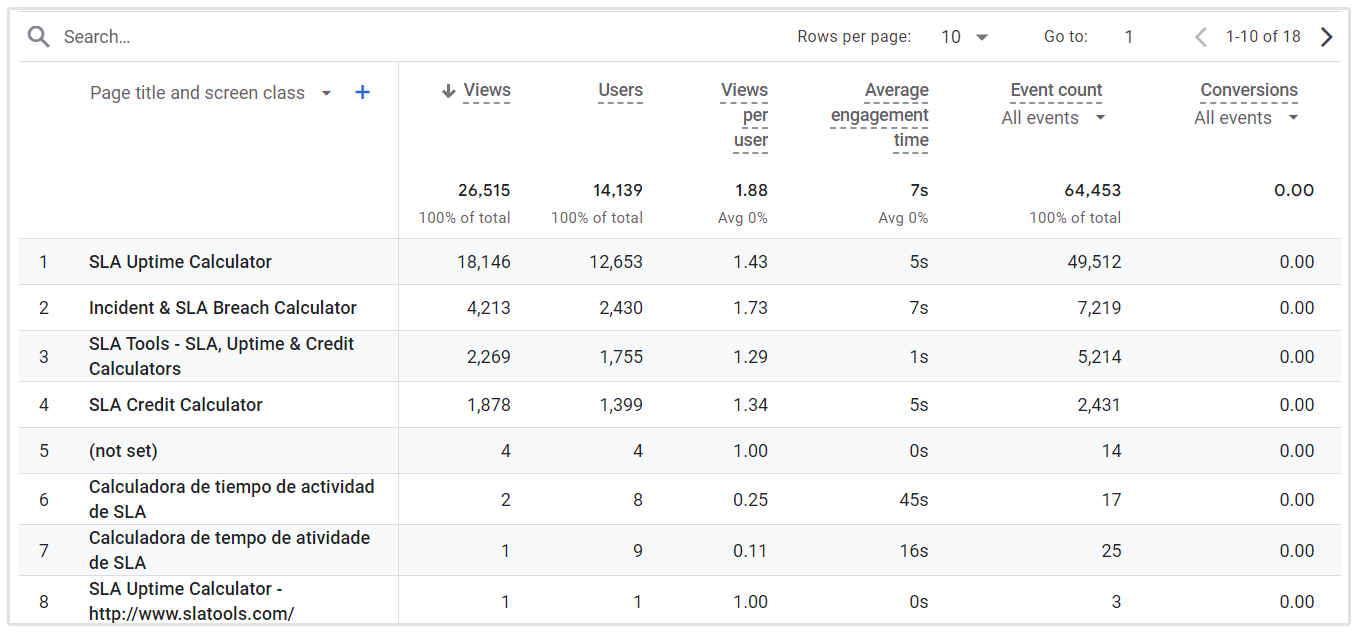 Dette vil fortælle dig, om du har nogen svage stykker indhold eller sider, der ødelægger din samlede afvisningsprocent og engagementrate. Hvis du gerne vil lære, hvordan du opsætter disse to målinger i din GA4, kan du læse mere her.