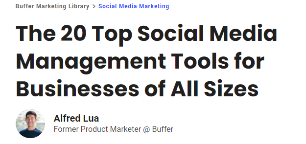 Her er et eksempel på en anden H1-titel og metatitel. Du kan se, at H1-tagget er “De 20 bedste værktøjer til styring af sociale medier for virksomheder af alle størrelser” hvorimod titeltagget er “De 20 bedste værktøjer til styring af sociale medier for virksomheder”.