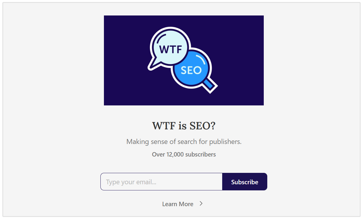 WTF is SEO er et specialiseret nyhedsbrev designet til at støtte nyhedsudgivere i at mestre "søgemaskineoptimering".