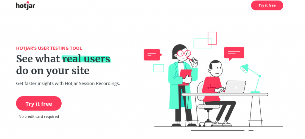 Diese Landingpage hat eine aufmerksamkeitserregende Überschrift, die sofort die Vorteile für Kunden zeigt. Sie kommuniziert das Alleinstellungsmerkmal effektiv - HotJar zeigt Ihnen, was echte Menschen auf Ihrer Seite tun, nicht nur Modelle.
