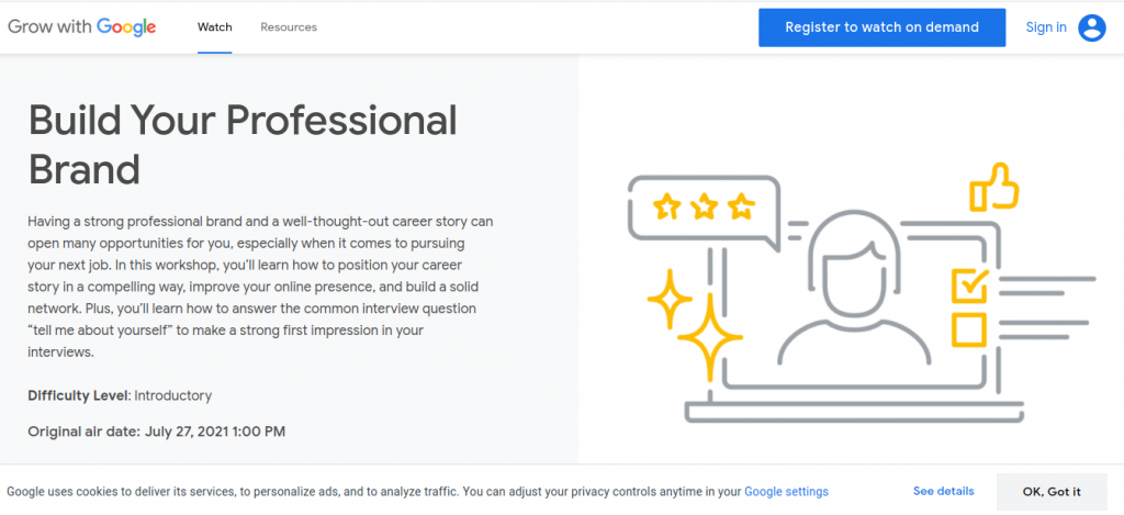 Ein weiteres Beispiel für eine event-basierte Landingpage, diese bewirbt einen Videokurs, der von Google angeboten wird.