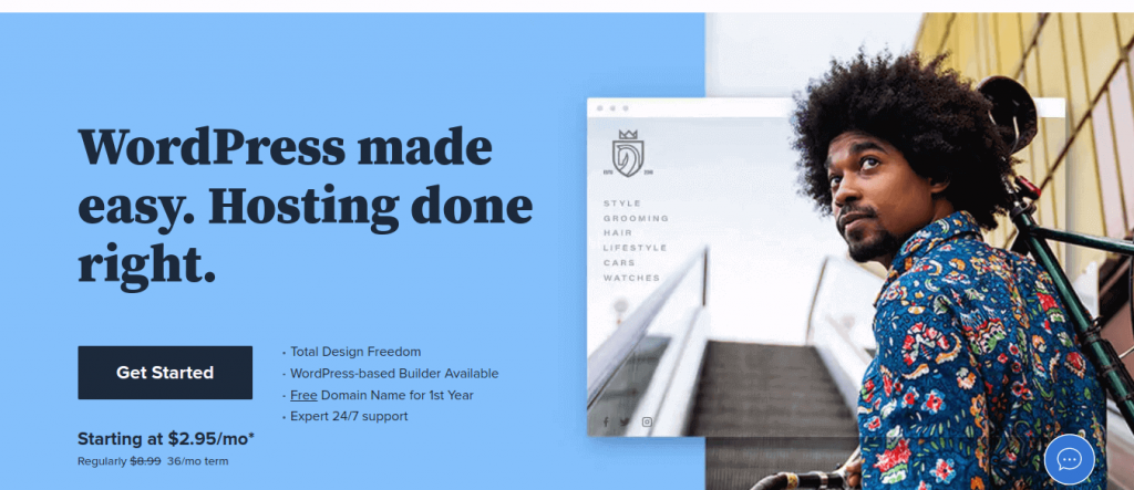Die Schlagzeile verrät Ihnen genau, was Sie bekommen - Hosting für WordPress-Seiten. Die Angabe der Preise auf der Landingpage ist Teil des USP von Bluehost - es ist günstiger als die Konkurrenz und bietet transparente Preise.