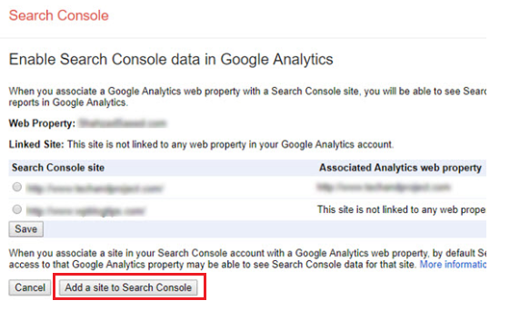 D. Als Nächstes gelangen Sie auf die Seite "Search Console-Daten in Google Analytics aktivieren". Klicken Sie auf "Eine Website zur Search Console hinzufügen".