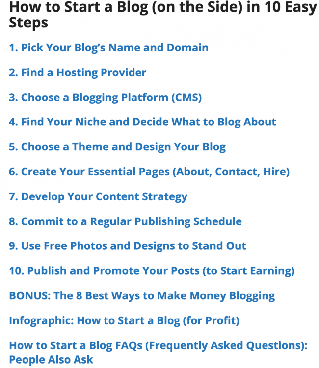 Du wirst dann einen umfassenden Beitrag über dieses Short-Tail-Keyword schreiben und das Thema breit gefächert abdecken (denke daran als das Inhaltsverzeichnis).