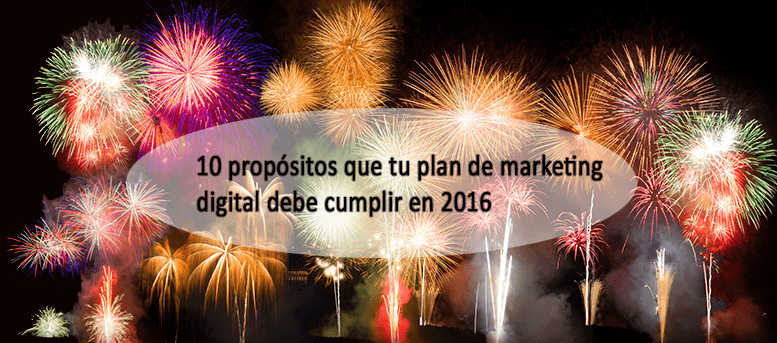 Pero no solo hacemos promesas en el ámbito personal. En el ámbito laboral, sobre todo cuando se está al frente de una pyme y se tiene que organizar muchas cosas, entre ellas el plan de , son muchas las mejoras que proponemos y que, por dejadez o falta de tiempo, no llegamos a realizar. Es por esta razón que he hecho una lista con los 10 propósitos que cualquier plan de marketing digital debe cumplir en 2015 si quiere triunfar en la red. Y recuerda: ¡año nuevo, vida digital nueva!