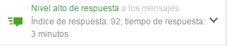 Facebook le chiva a tus seguidores cuánto tardas de media en contestar un mensaje privado. Hoy en día, los usuarios y sobre todo los millennials, quieren respuestas rápidas y eficientes, y si no son así, ya habrán adquirido una visión negativa de la marca. Lo ideal es que siempre se esté atento a los mensajes que puedan llegar y contestarlos al momento siempre que se pueda. Facebook te premiará contándole a los usuarios que la velocidad de respuesta es alta y eso mejorará mucho tu página de empresa. ¡Esta es una de las razones principales por las que se debe contratar a gente profesional a la que nunca se le escape un solo mensaje!