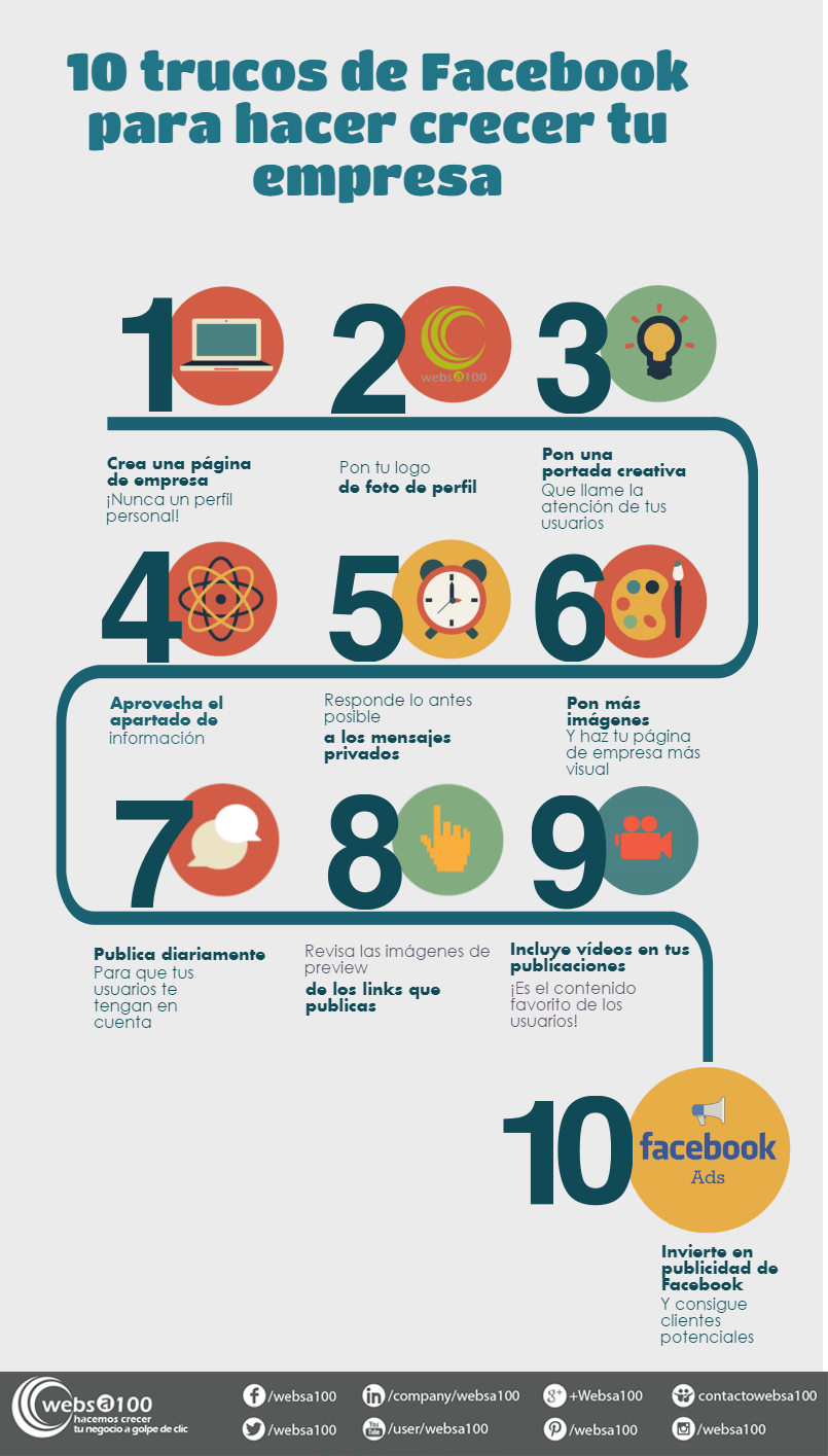 Miles de millones de personas entran en Facebook diariamente, y pese a todo, es y será (por lo pronto) la red social más popular y utilizada del mundo. Actualmente, el 77% de todas las entradas en plataformas sociales vienen de Facebook. ¿No te parece razón suficiente para optimizar la presencia de tu empresa en esta enorme red social? Hoy te enseñaré 10 trucos de Facebook para que tu empresa empiece a crecer en la red de Mark Zuckerberg. ¡No pierdas detalle!
