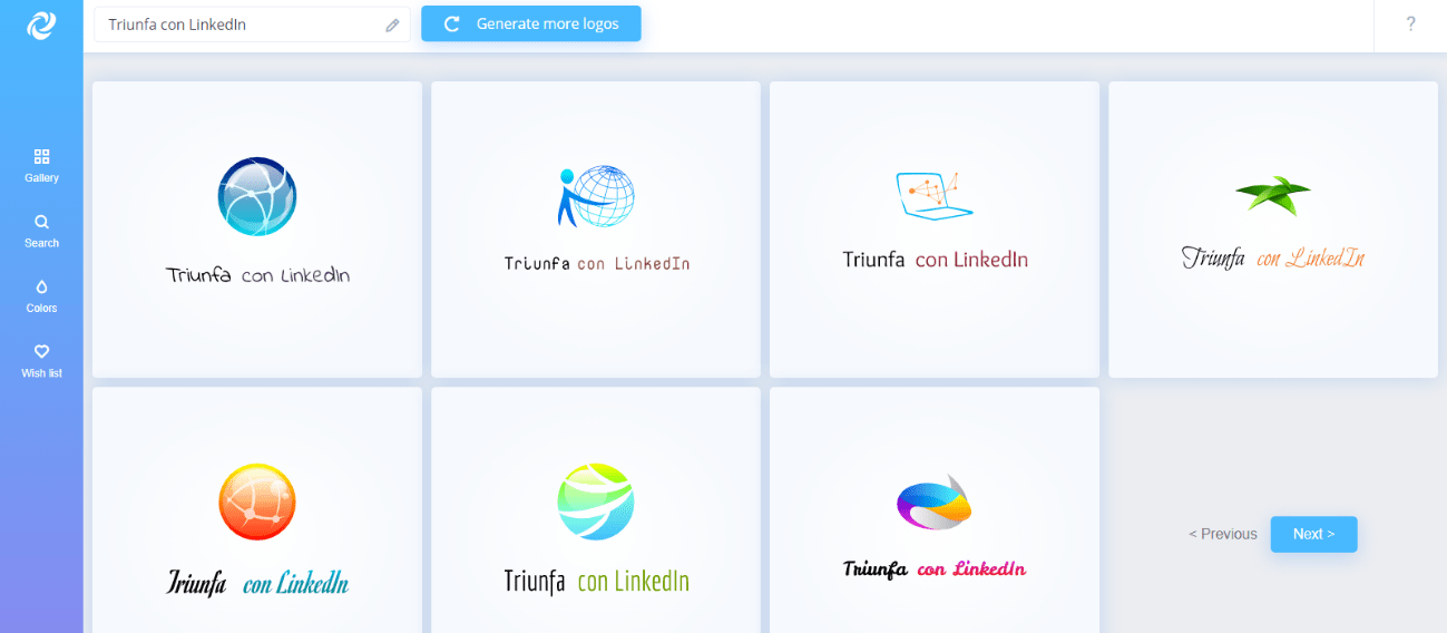 Logogenio se basa en la simplicidad más absoluta para ofrecerte tu logo gratis. Al abrir la web tienes un gran campo de texto donde se te invita a introducir el nombre de tu empresa. Cuando le das a «Empezar ahora», la web te genera automáticamente muchísimos logotipos basándose en sus plantillas, con el nombre de tu empresa ya situado. Puedes seleccionar el que más te guste y después editarlo. Podrás cambiar el icono, los textos, los colores y añadir algunos elementos básicos como flechas, líneas, marcos, pictogramas y otras figuras. Es muy sencillo de usar, también en formato de arrastrar y soltar, y muy intuitivo.