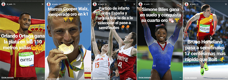 Puedes compartir contenido que llegue directo al usuario, contenido alegre y efímero. Este contenido llegará a tus seguidores sin el reto de conseguir audiencia como en Snapchat. Las páginas que ya lo utilizan están creando información concisa y clara en forma de imágenes con sus titulares breves y directos. Un buen ejemplo de una marca que le está sacando el máximo partido a IG Stories es El País, donde nos van dando las diferentes noticias a través de esta nueva forma que ha implantado Instagram. ¡Échale un vistazo desde tu Smartphone!