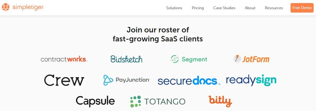 Simple Tiger ha trabajado y ayudado a grandes nombres en la industria de SaaS, incluyendo Segment, JotForm, BidSketch, ContractWorks y Bitly.