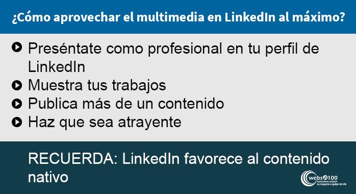 Si quieres que el contenido de tu perfil de LinkedIn sea mucho más interesante y potente, debes potenciar y utilizar el multimedia. Sigue estos consejos para aprovechar tus contenidos visuales y lograrás un perfil mucho más atractivo. ¡Empecemos!
