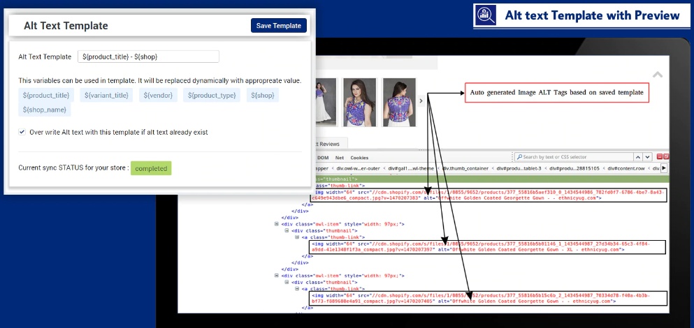 Esta aplicación para Shopify te permite solucionar enlaces rotos y añadir esquemas a tu tienda. Pero lo que es más importante, ayuda a los propietarios de las tiendas a añadir el texto del atributo alternativo de imagen a las imágenes de los productos y al contenido de la página.