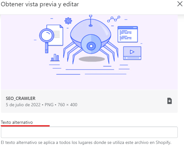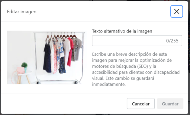 También puedes añadir directamente tu texto alternativo a las imágenes desde el editor de la tienda.