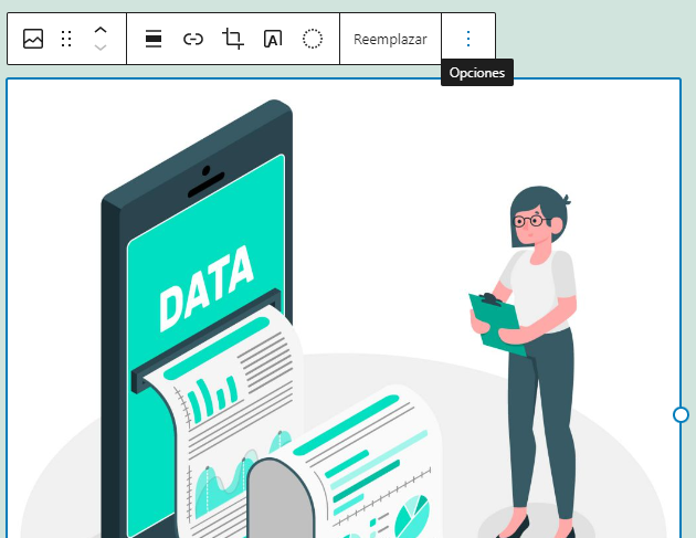 Solo tienes que hacer clic en la imagen a la que quieres añadir texto alternativo. Se abrirá un menú con varias configuraciones de imagen y opciones de personalización.