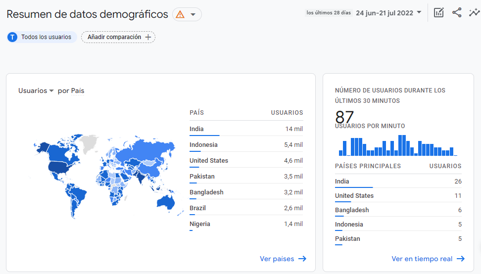 Otra métrica clave al evaluar el tráfico web consiste en determinar si tu sitio web está recibiendo tráfico de tu público objetivo. Recuerda, no quieres cualquier tráfico, quieres tráfico dirigido de tu público objetivo.