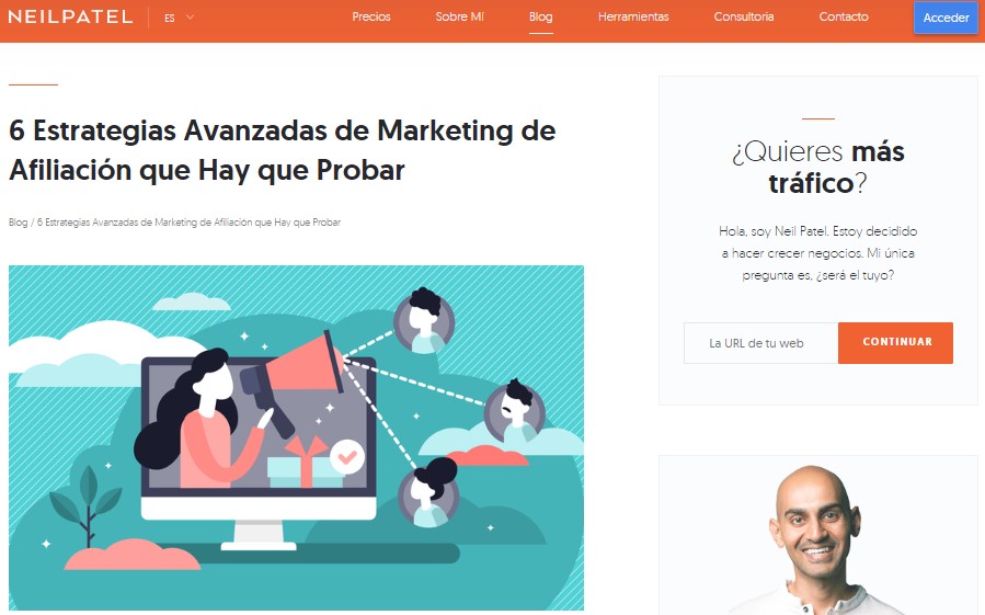 Orientado a las empresas de marketing que construyen sus sitios web desde cero, el blog de marketing de Patel se puede ver como una herramienta para dirigir el tráfico de una empresa de marketing y una biblioteca útil de habilidades de marketing online.neil patel