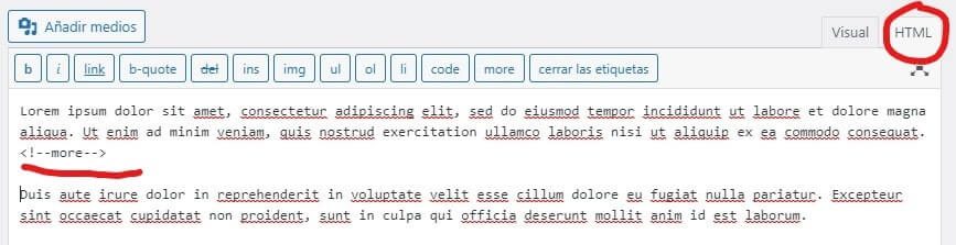 - Al usar la etiqueta leer más en WP debes repetir el procedimiento anterior para cada una de tus artículos o páginas