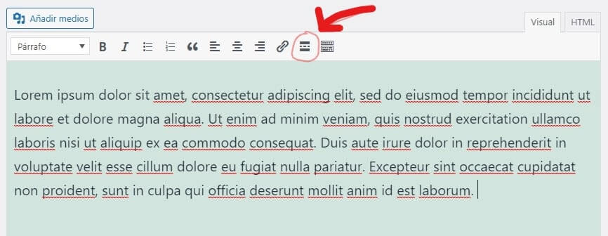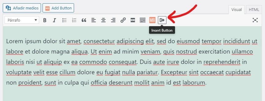 - Presiona la opción ‘visual’ de tu editor y elige el siguiente icono:
