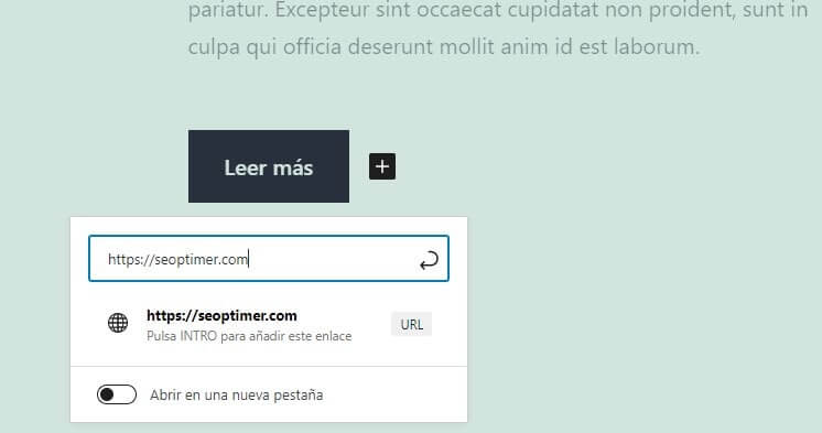 - Añade el texto del botón y la URL que quieres incluir en el botón
