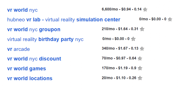Estos resultados muestran que la ubicación es importante cuando se trata de una sala de juegos de realidad virtual. Parece que los usuarios están más interesados en los diferentes lugares que se ofrecen, códigos de descuento o ubicaciones, que en otras cosas como servicios o costos. ¿Cómo podemos determinar cuál es la verdadera intención de estos usuarios? ¿Están buscando comparar salas de realidad virtual según la ubicación? ¿Los usuarios buscan cosas interesantes para hacer durante las fiestas de cumpleaños? ¿Encontrar un código de descuento es la búsqueda más destacada?
