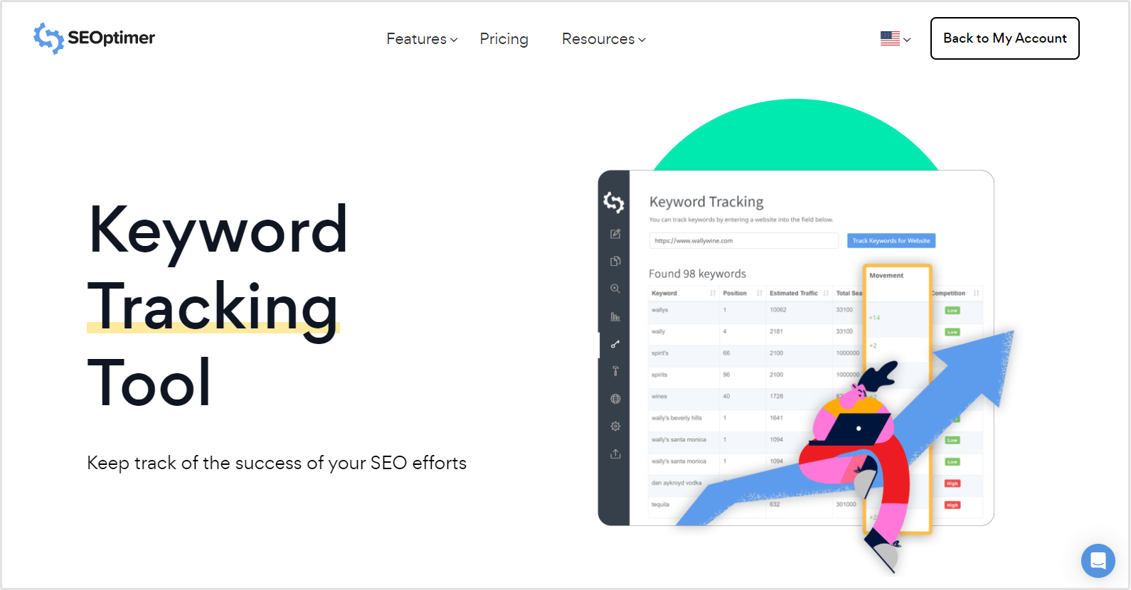 Usando la función de seguimiento de posición de palabras clave de SEOptimer, puedes obtener más y mejores perspectivas de tus datos básicos de GA.