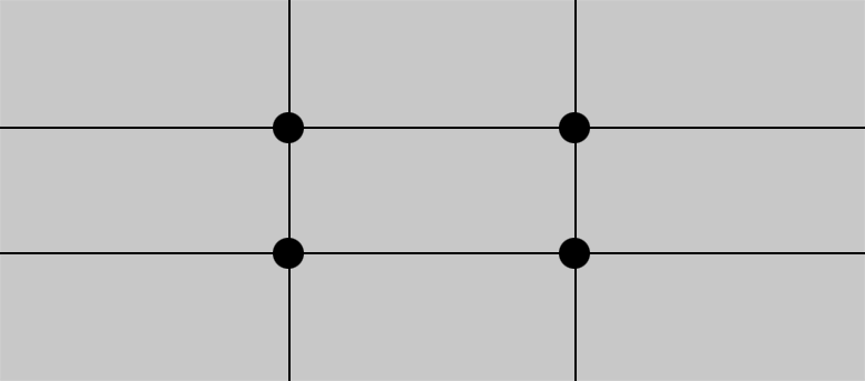 Colocaremos nuestro elemento principal en una de estas intersecciones, y en caso de tener un elemento secundario, lo colocaremos en el punto de intersección diagonalmente opuesto.